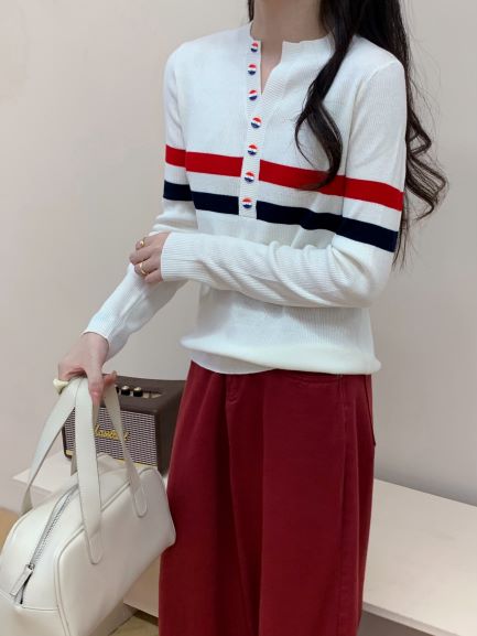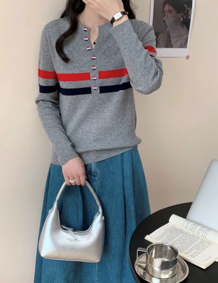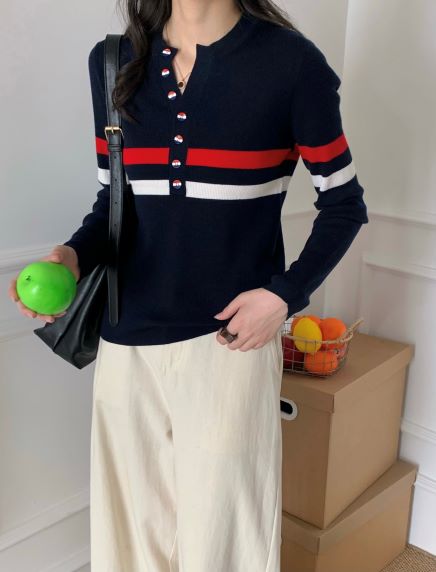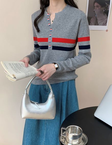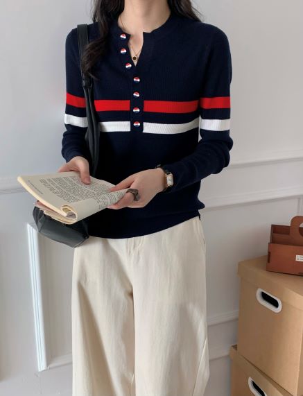 Crafted with premium, ultra-soft ribbed knit fabric, this women’s striped V-neck sweater delivers the perfect balance of warmth, breathability, and timeless style, making it an essential addition to your cold-weather wardrobe. Designed with a flattering V-neckline accented by a decorative button placket, it adds a subtle preppy touch while elongating your silhouette, while the bold red, white, and navy color-block stripes create a striking, eye-catching look that never goes out of style. The stretchy ribbed construction ensures a comfortable, figure-flattering fit that moves with you, while the long sleeves provide cozy coverage for crisp fall days and chilly winter mornings. Available in three versatile colorways—classic white, heather gray, and deep navy—this sweater effortlessly transitions from casual outings to polished office looks. Pair it with high-waisted jeans and ankle boots for a weekend brunch, style it with a midi skirt and loafers for work, or layer it under a blazer for a sophisticated ensemble. Meticulously stitched with durable, high-quality materials, this sweater is built to last through countless wears and washes, retaining its shape and softness season after season. Lightweight yet warm, it’s perfect for year-round layering, offering endless styling possibilities for every occasion. Whether you’re running errands, meeting friends, or heading to the office, this striped knit pullover combines comfort, style, and versatility to become your go-to wardrobe staple.
